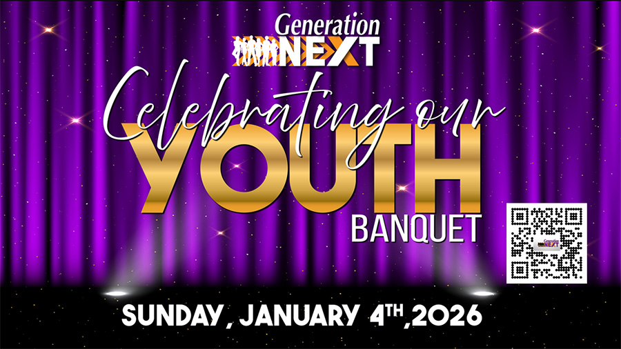 Youth, please join Generation Next at the “Celebrating our Youth” Banquet on Sunday, January 4th, 2026 following worship in the Celebration Hall. Please register at the QR code, sign up in the bookstore or text YB to: (972) 426-7755 to attend no later than Sunday, December 28th. Youth, dress to impress!