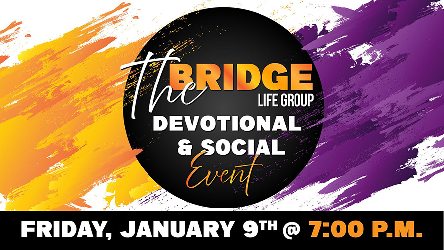 You’re invited to the Bridge Devo & Social on Friday, January 9th @ 7:00 p.m. in Celebration Hall for a year-end fellowship event at Central Pointe Church. Text BDevo1 to 972-426-7755 to register for the Bridge Devo & Social.